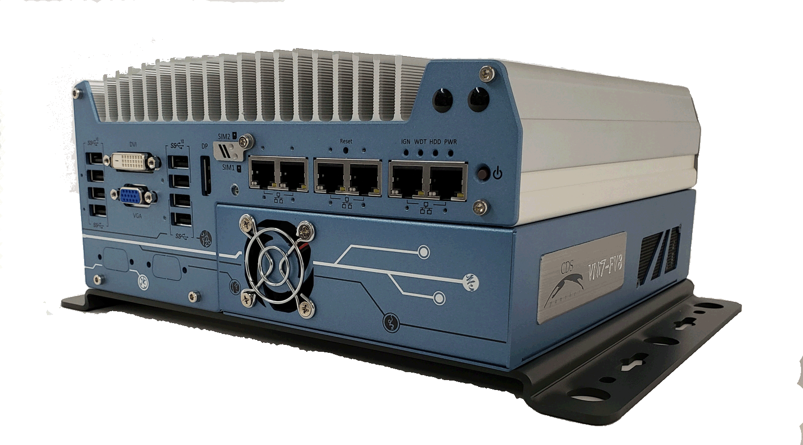 CDS VNi7 Embedded Computer: CPU Intel i7-8700 * Ethernet 10x GbE 2-Slot PCIe Includes 4x PoE+ IEEE 802.3 at PoE+ PSE * RAM 16GB DDR4-2666 SODIMM PC4-21300 CL=19 Dual Ranked Unbuffered NON-ECC 1.2V * SSD 512GB M.2 NVMe PCIe 2280 970PRO (TLC) 0°C ~ 70°C / 32°F ~ 158°F (Operating) * DC Input 1x3-Pin Pluggable Terminal Block for 8~35 VDC * Dimensions 9.5”(W) x 9.0”(D) x 4.5”(H) * Win10 IoT Enterprise LTSB 2016 OEI High End EPKEA ESD L3942
